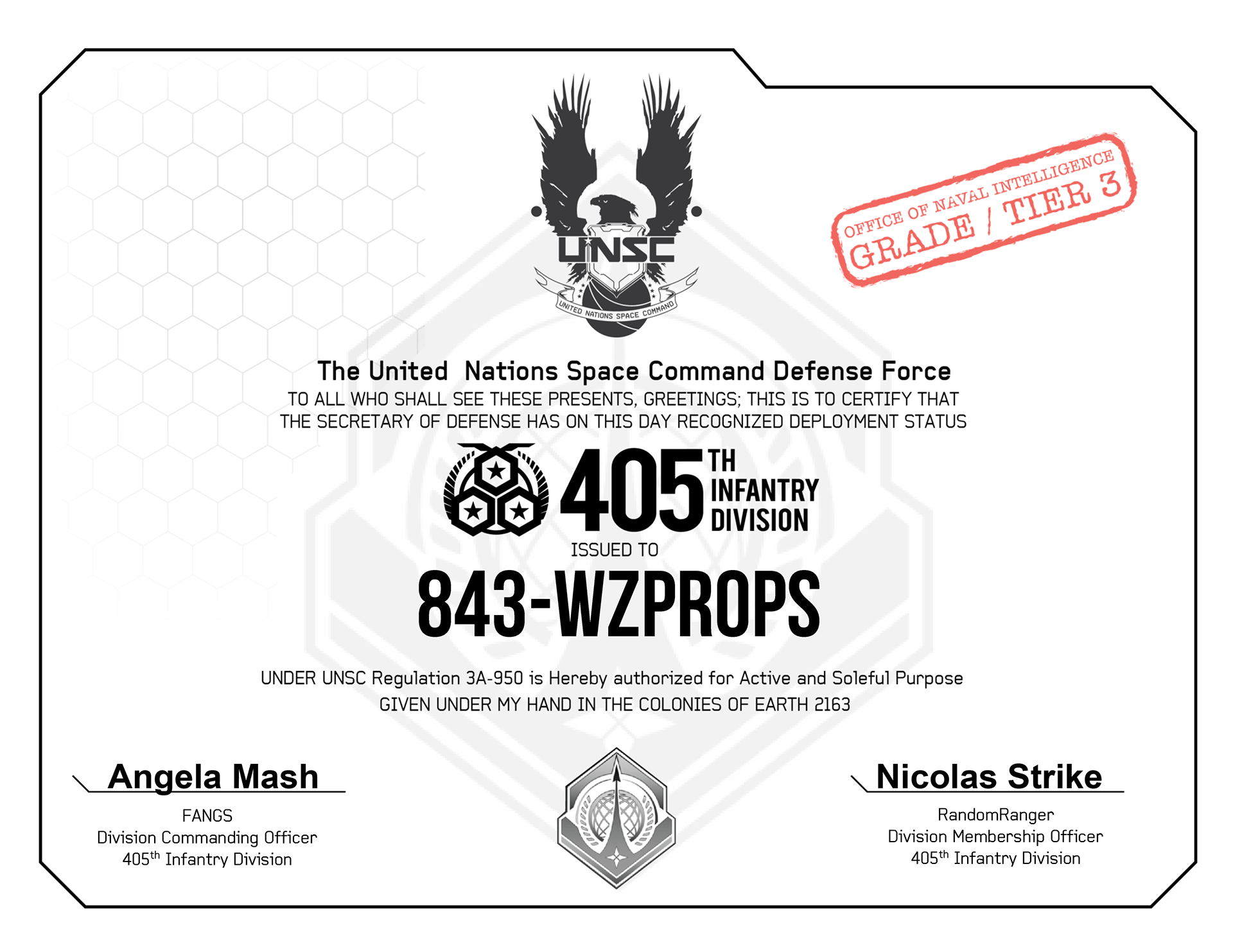 Costume approved for deployment for the 405th Infantry Division at the highest tier. (2023)
